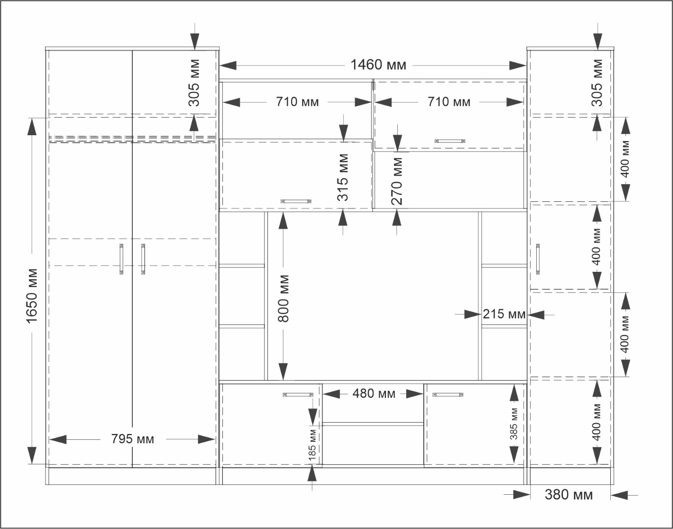 Правая и левая секции шкафа взаимозаменяемые!