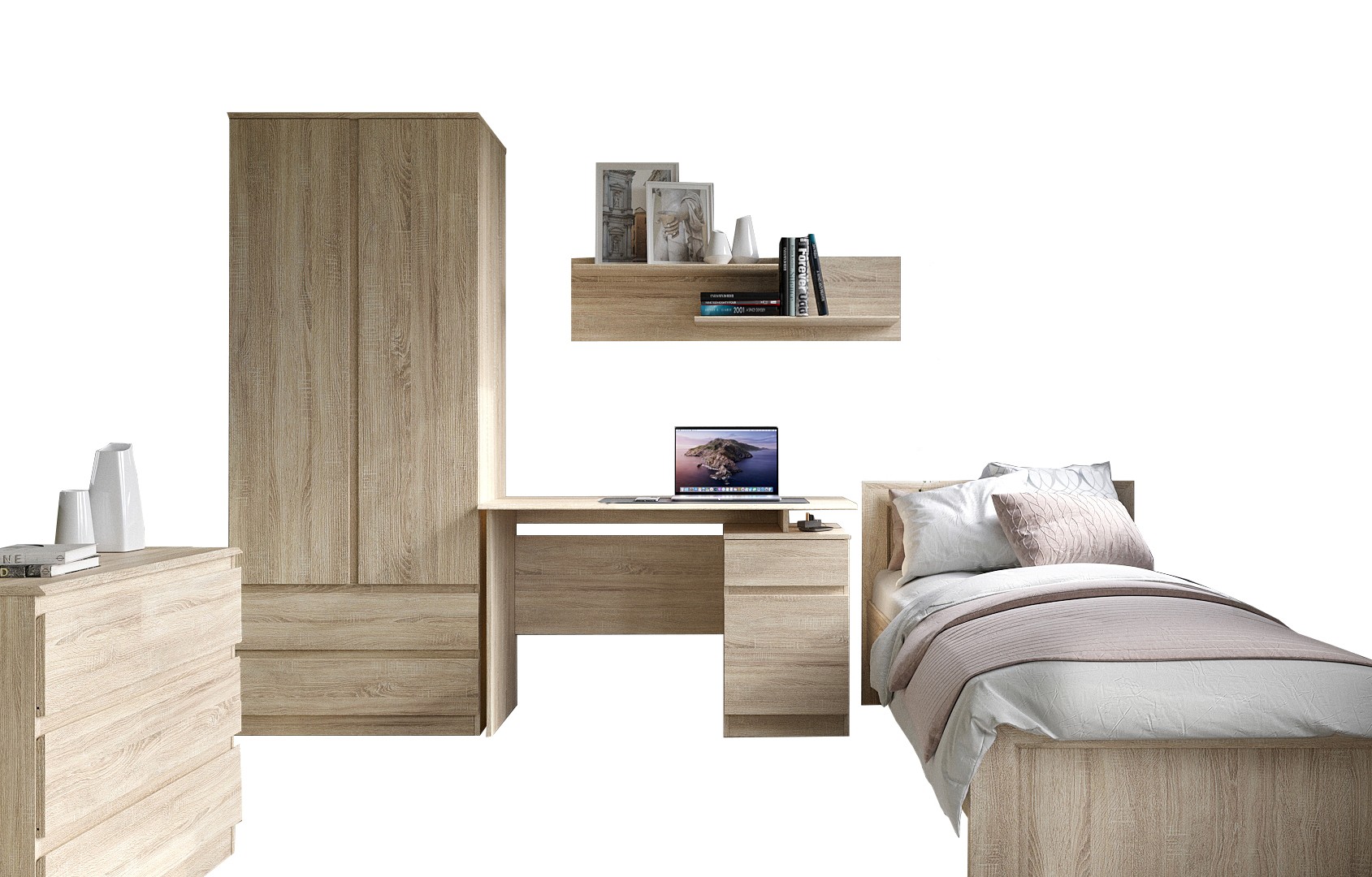 Шкаф ТР-2D2S (1 шт.), кровать ТР-900 (1шт.), комод ТР-3S (1 шт.), тумба (стол) ТР-1D1S (1 шт.), полка ТР- 1TL (1шт.) |