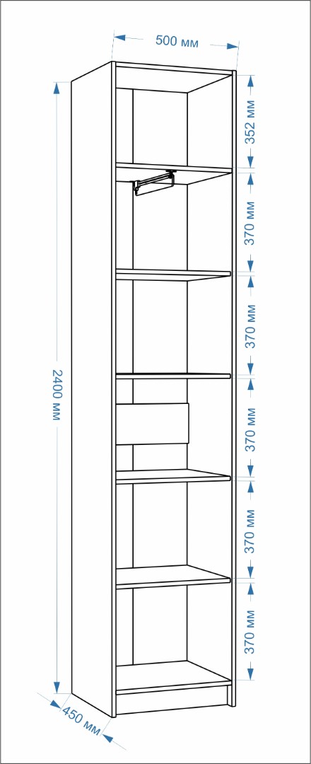 1 штанга выдвижная, 6 полок |