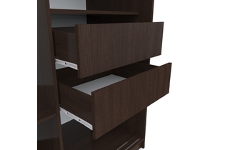 В правой части расположены 3 полки и 2 выдвижных ящика.