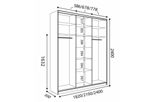 Левая и правая секции оснащены полкой и горизонтальной штангой для вешалок, расположенными в верхней части секции. Под штангой есть достаточно места для хранения более длинной одежды, такой как платья и пальто.