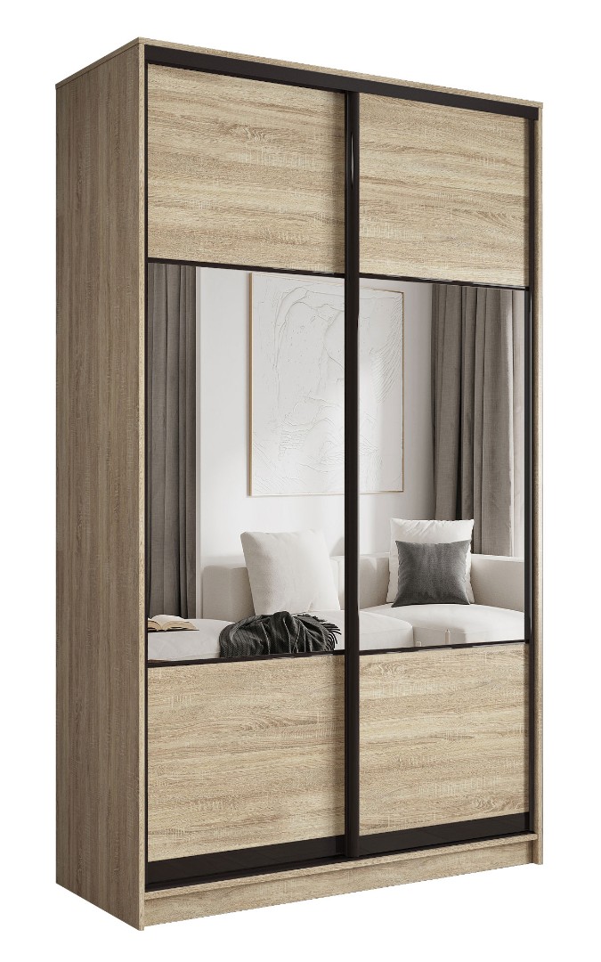 Стандартная глубина шкафа в 60 см позволяет разместить одежду на плечиках без помех для открытия раздвижных дверей, а полки создают вместительные ниши для крупных вещей, таких как постельное бельё, пледы, одеяла и подушки.