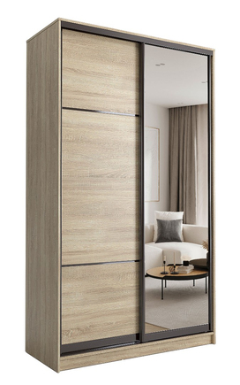 Стандартная глубина шкафа в 60 см позволяет разместить одежду на плечиках без помех для открытия раздвижных дверей, а полки создают вместительные ниши для крупных вещей, таких как постельное бельё, пледы, одеяла и подушки.
