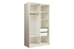 Левая секция оборудована штангой для хранения одежды на плечиках, 2-мя нижними и 2-мя верхними нишами.