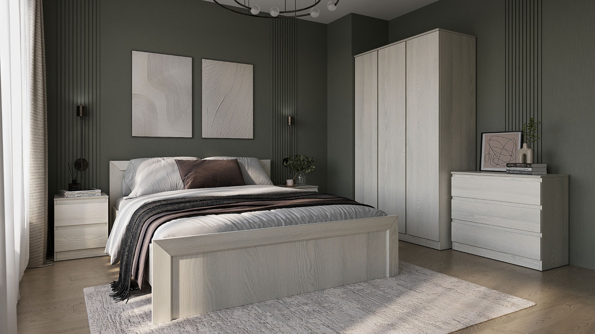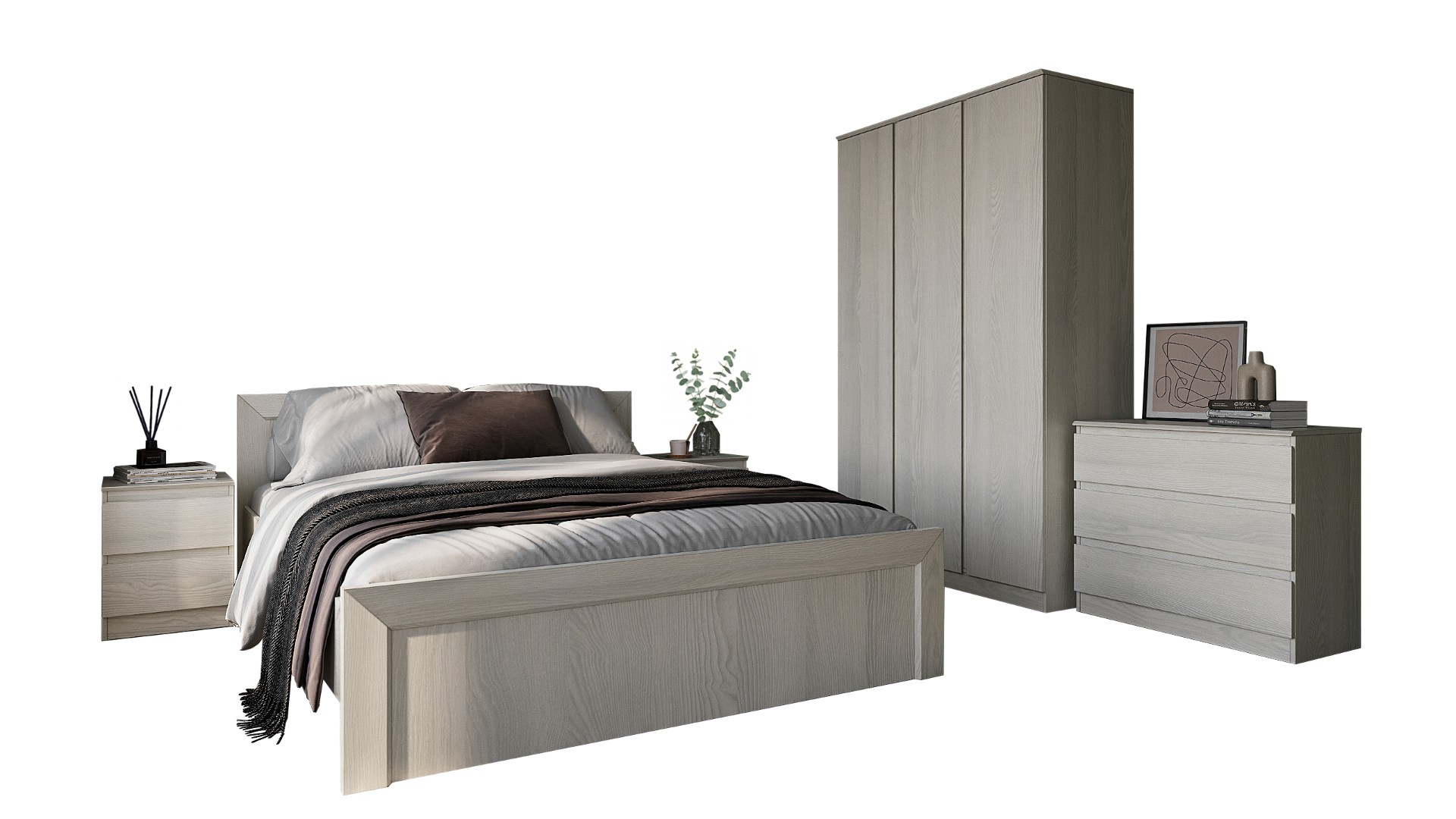 Шкаф ТР-3D-01 (1 шт.), кровать ТР-1600 (1шт.), комод ТР-3S (1 шт.), тумба ТР-2S (2 шт.) |