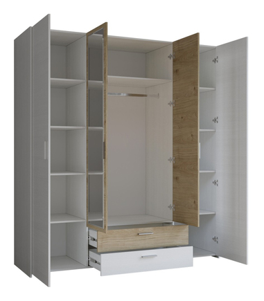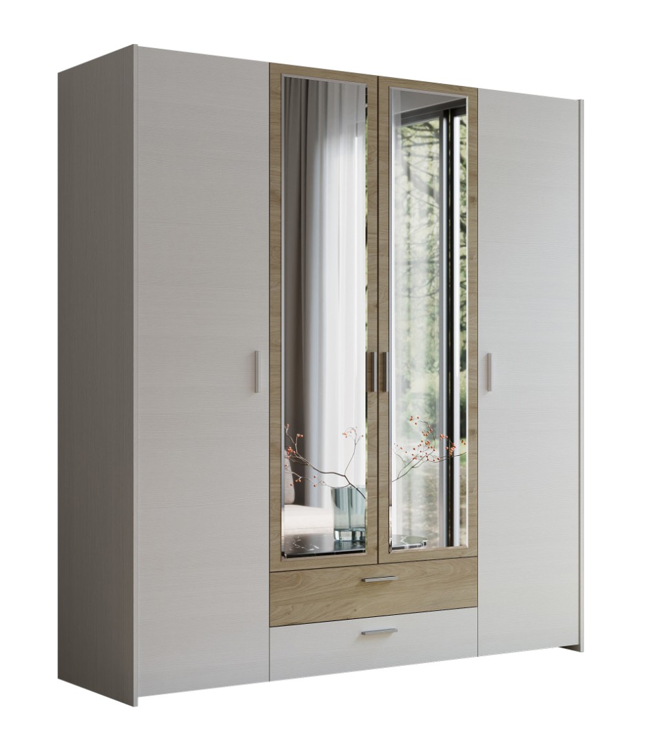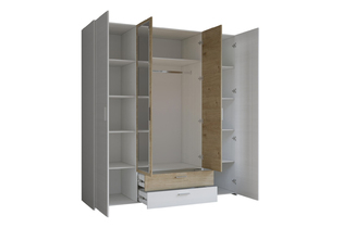 Ручки на фасадах дверей и ящиков выполнены из пластика с матовым покрытием. Они выглядят достаточно минималистично, что соответствует стилю мебели. Для фасадов дверей используются качественные петли, а для выдвижных ящиков – направляющие с шарикоподшипниковым механизмом и телескопической структурой, обеспечивают полное выдвижение.