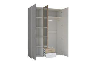 Ручки на фасадах дверей и ящиков выполнены из пластика с матовым покрытием. Они выглядят достаточно минималистично, что соответствует стилю мебели. Для фасадов дверей используются качественные петли, а для выдвижных ящиков – направляющие с шарикоподшипниковым механизмом и телескопической структурой, обеспечивают полное выдвижение.
