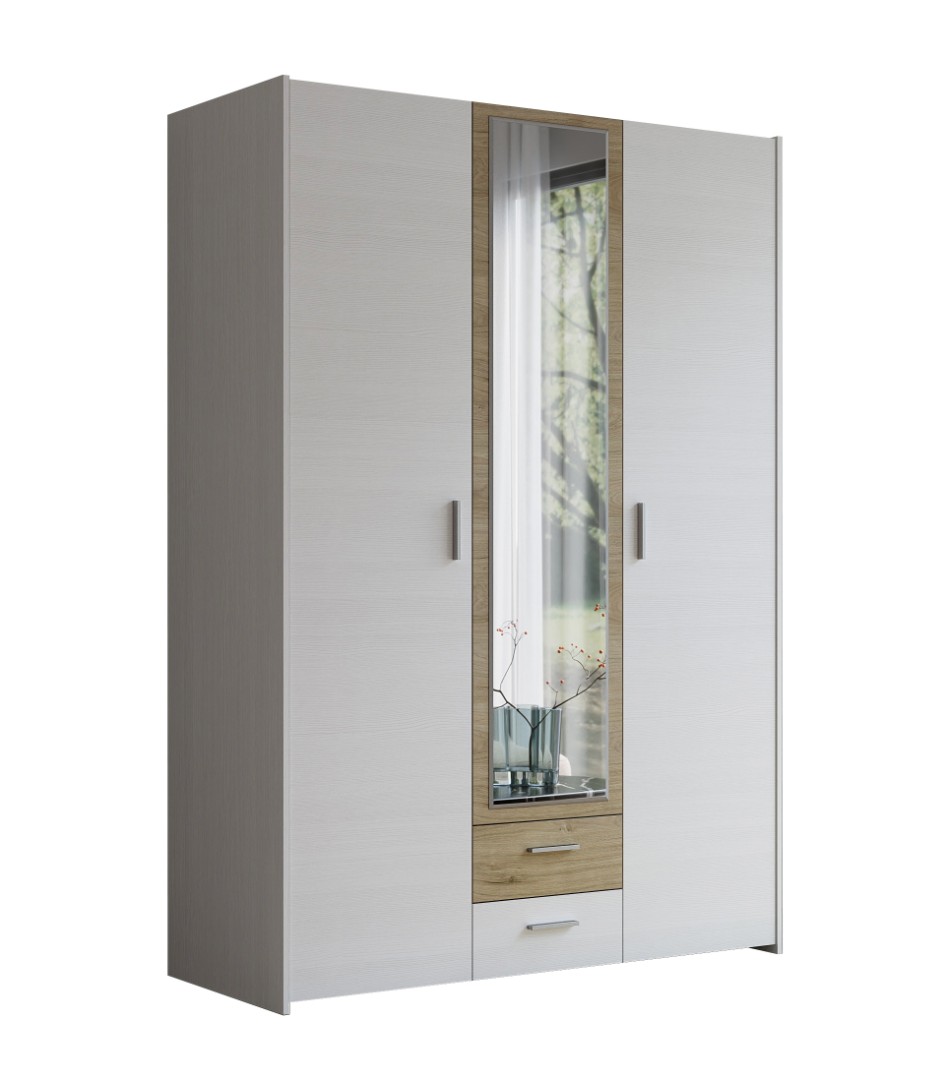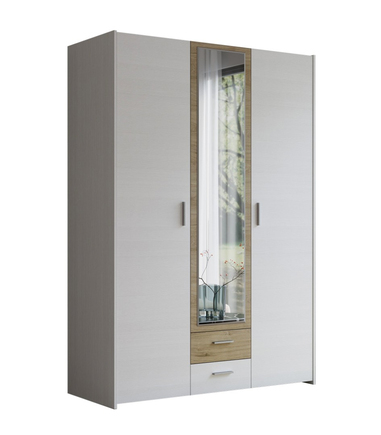В цветовой палитре преобладают светлые, нейтральные тона: белый ЛДСП (Бодега белый) для основной части мебели. В качестве акцента используется светлое дерево (Гикори Кингстон). Это добавляет теплоты и уюта интерьеру.