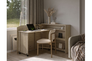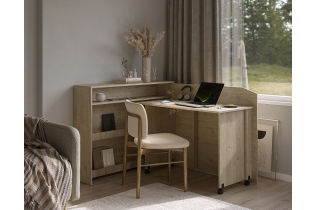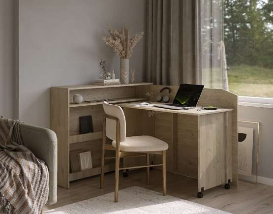 Главное преимущество "Домашнего офиса" – это его способность трансформироваться и максимально эффективно использовать каждый сантиметр вашего дома. Внутри стола (тумбы), скрытые от посторонних глаз, расположены небольшие, но вместительные полки. Они идеально подойдут для хранения канцелярских принадлежностей, книг, документов или любых других мелочей, которые вы хотите держать под рукой, но при этом в идеальном порядке.